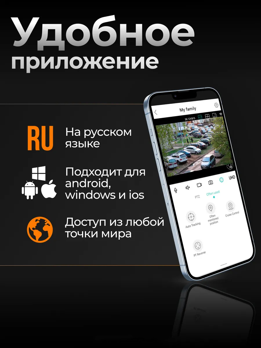 Эта инновационная камера поддерживает запись на карту памяти до 128 Гб или хранение данных в облаке. Для вашей защиты можно настроить режим сигнализации при движении с отправкой уведомлений на телефон или электронную почту. Камера проста в установке и эксплуатации, не требует проводов, и станет незаменимым оборудованием для вашего дома.